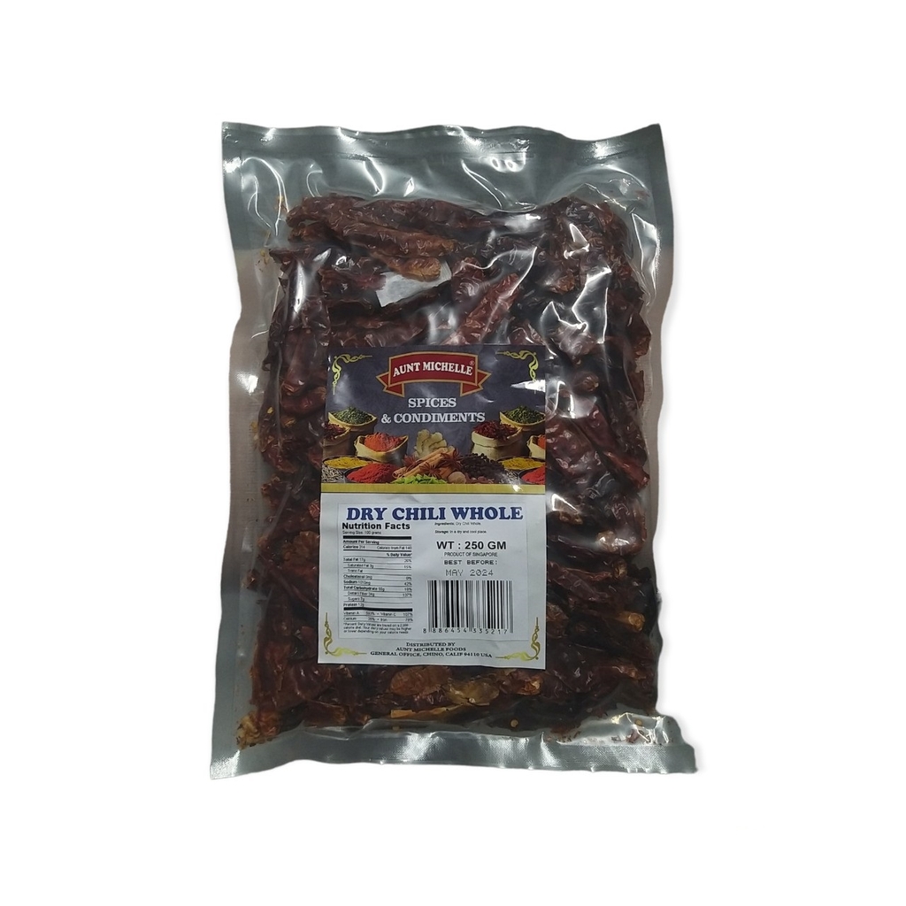 Ớt Chili Nguyên Trái khô - Dry Chili Whole 250g Xuất Xứ: Singapore Đóng gói: 250g Hạn sử dụng: 24 tháng Hướng dẫn sử dụng: Làm gia vị tùy thích