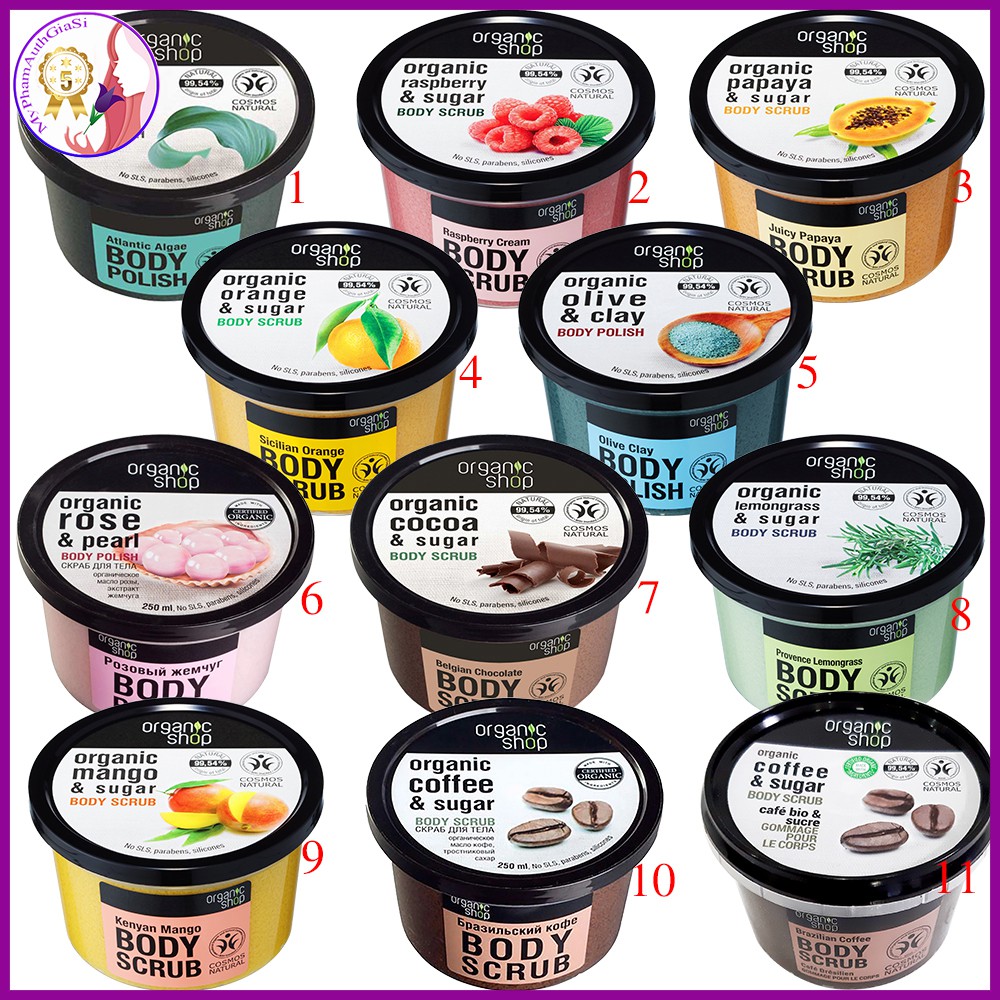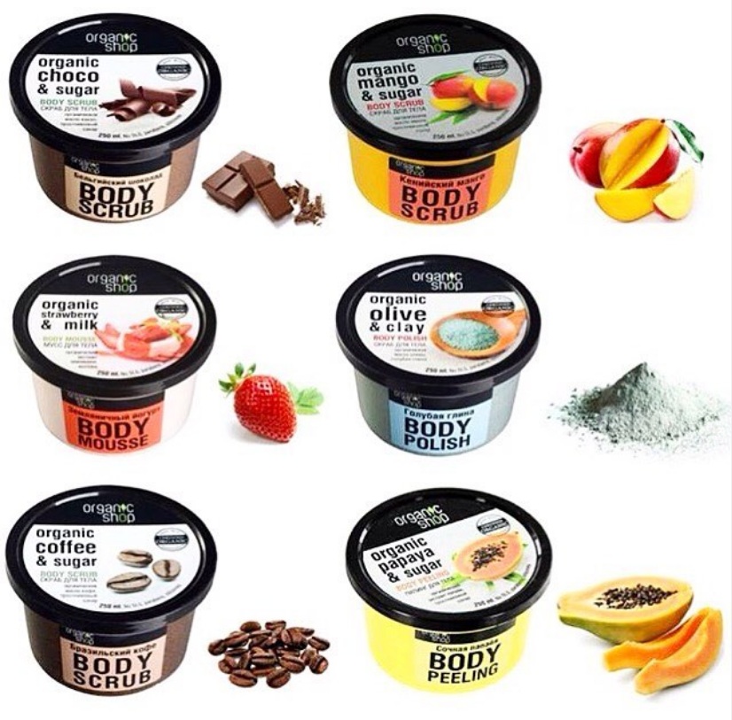 Organic Shop là một thương hiệu mỹ phẩm hữu cơ đến từ Nga, chứa khoảng 70% thành phần có nguồn gốc từ thiên nhiên được chứng nhận theo chuẩn hữu cơ do Bộ Nông nghiệp Mỹ (USA) đề ra. Organic Shop chuyên về các sản phẩm tẩy da chết mặt, tẩy da chết body với các mùi hương tự nhiên như cà phê, xoài, bơ, cam,…Hiện nay, không chỉ có những thương hiệu đến từ Hàn Quốc, Nhật Bản, Mỹ, Pháp, Anh,… được mọi người ưa chuộng, mà những sản phẩm chăm sóc cơ thể của Nga cũng đã bắt đầu phổ biến tại Việt Nam. Tẩy tế bào chết toàn thân Organic Shop Body Scrub chính là sản phẩm nổi tiếng nhất của hãng và đang được săn đón nhiều nhất tại Việt Nam hiện nay.