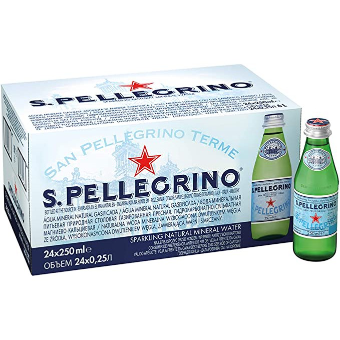 Thùng 24 chai nước khoáng có gas hiệu San pellegrino - Chai thủy tinh 250 ml
